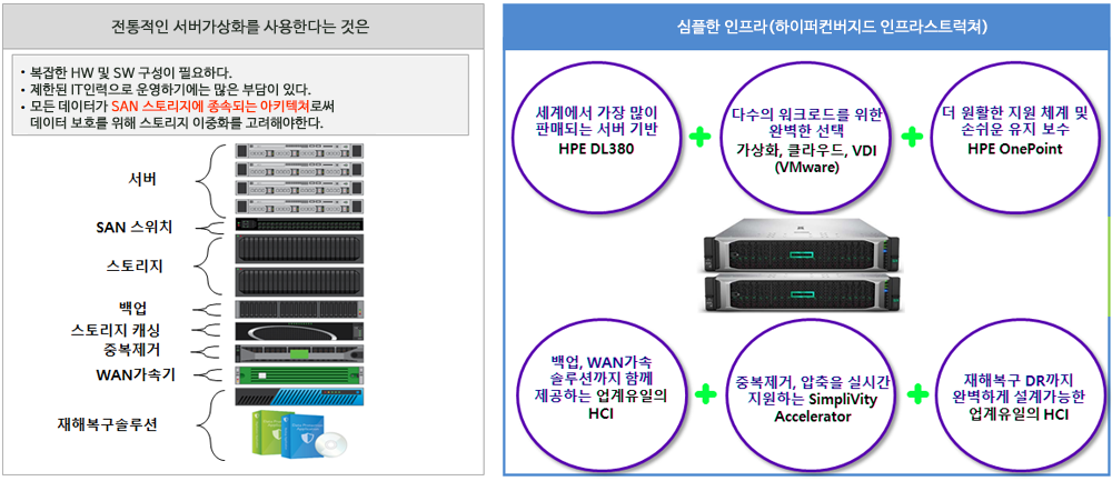 | 최적의 데이터 효율성을지닌 가상화 기반 솔루션 (HPE SimpliVity) |